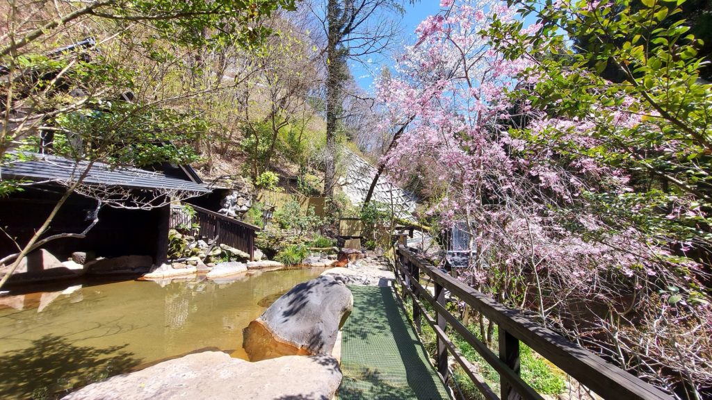 枝垂桜もいい感じ 2021.03.27 旅館日記 Share 本館大浴場を抜けた奥、混浴露天風呂エリアの桜がピークに 温泉に浸かりながら花見露天 今の時期だけの楽しみですね (^^♪ 川風呂の上にも桜が 春の癒しですね~~~ (*´ω`*) さて、今晩の雨でどれだけ生き残るか‥‥ てるてる坊主でお祈りしておきましょう _(:3 」∠)_