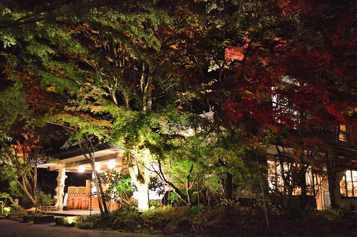 夜の静けさは・・・ 2014.11.08 旅館日記 Share (奥の湯正面玄関前) 同じ場所でも朝と夜との違い。 灯りに照らされる紅葉が綺麗。 11月に入り奥の湯も連日賑わっておりますが、夜のこの静けさは変わりません。。 フロント 齊田