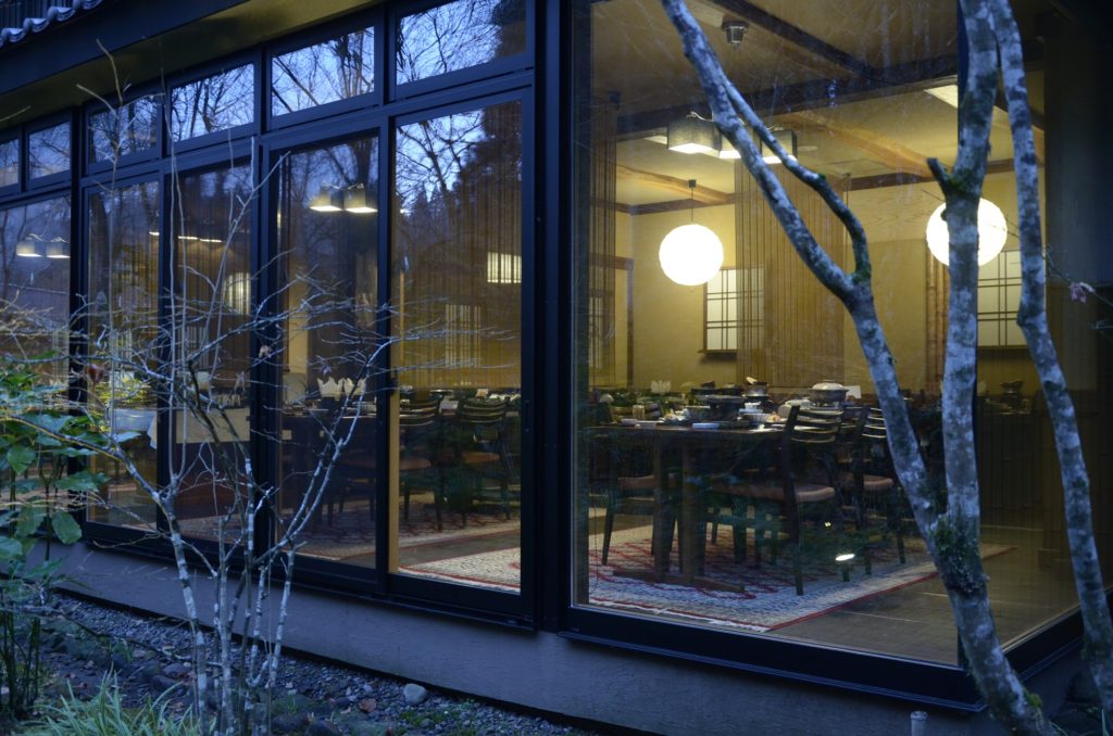 明るすぎない照明が、中庭をいい感じに照らしております