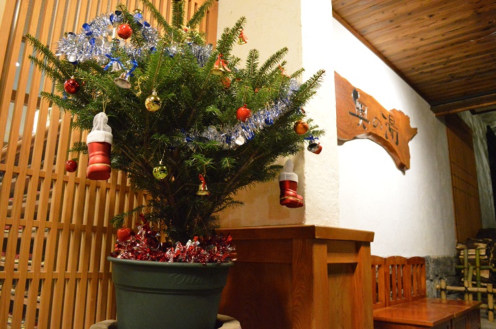 奥の湯玄関前がクリスマス仕様に。