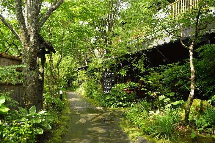 雨上がりの奥の湯敷地内に届く日差しがとても気持ちいい(^^)