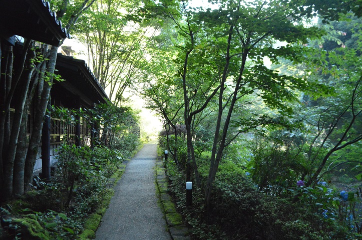朝から気持ちのいい木漏れ日、、涼しげな散歩道(奥の湯敷地内)