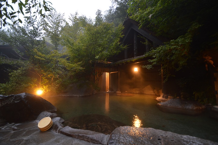 雨あがり、、、早朝の露天風呂。