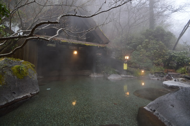ちょっと霧がかった雨あがりの露天風呂。