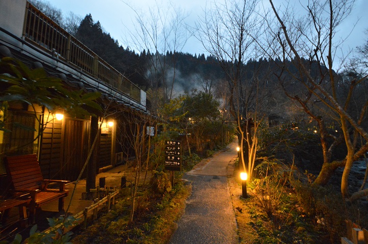 ホッとする散歩道の風景。 2016.02.01 旅館日記 Share (奥の湯敷地内散歩道) 「ん?」というぐらいですが、朝ちょっと小雪も舞うぐらい 冬の寒さを感じた一日。夕暮れ時・・・ 温泉湯けむりのある風景がホッとする。。 フロント 齊田