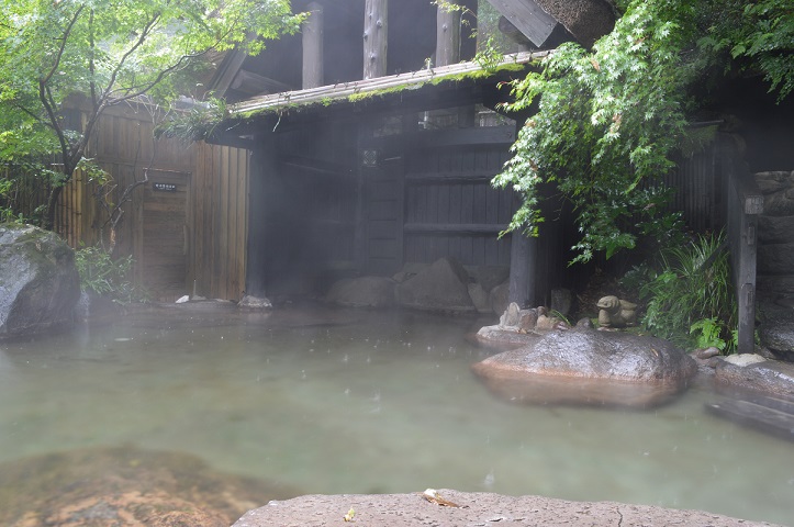小雨降る中の露天風呂・・も風情たっぷりです。