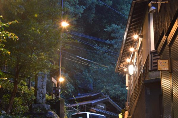 夜の黒川温泉街。