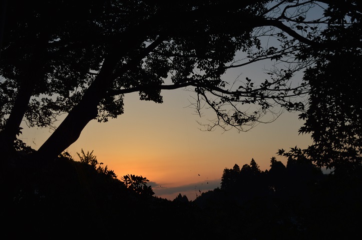 黒川温泉の中心街から見た夕暮れ。